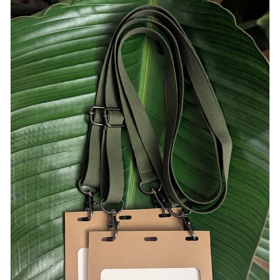 Not all recycled lanyards are created equal. These are made from 100% cotton fabric rolls made in the USA in 1972 for military webbing. Lanyards have been cut, assembled and hand-sewn in the USA. Designed for reuse, not disposal, they offer a richer, more authentic story than single-use, logo-locked rPET lanyards.