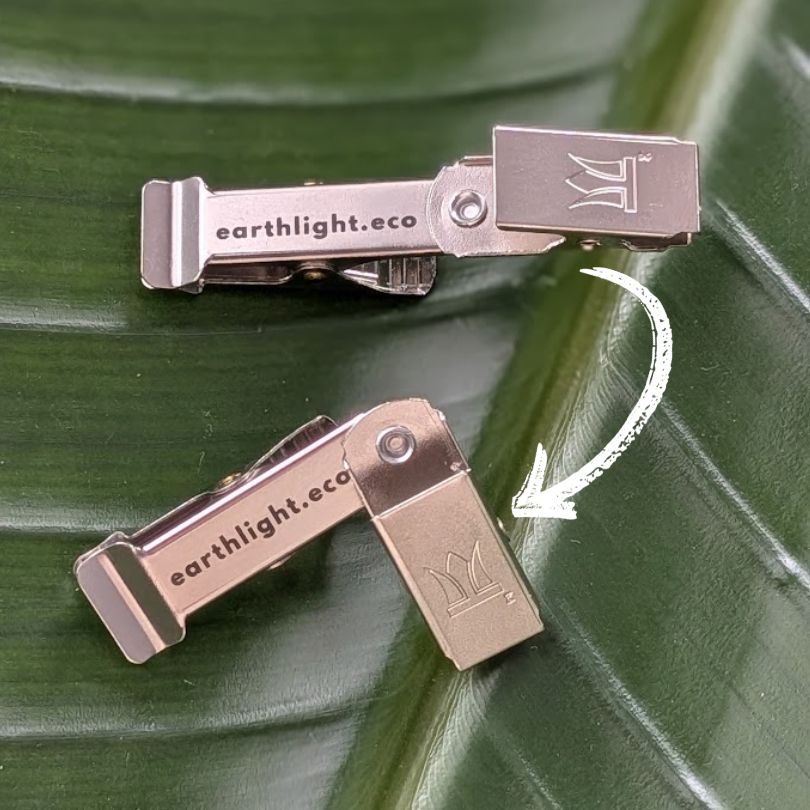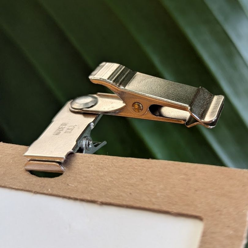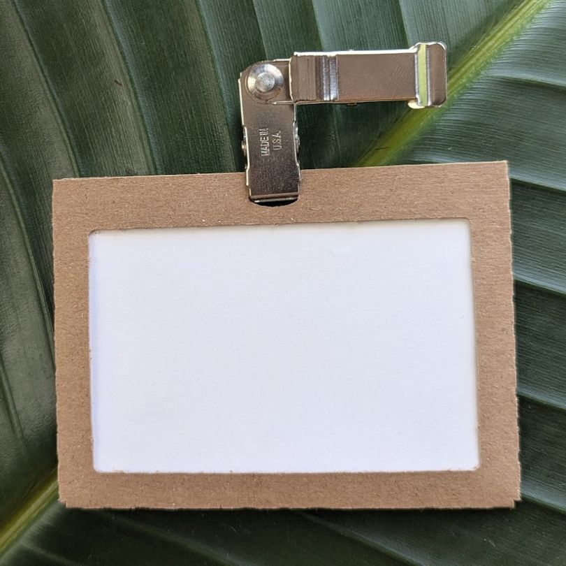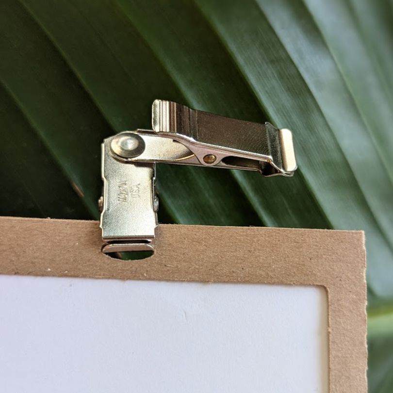 We have partnered with a U.S. manufacturer to bring you this one-of-a-kind, riveted double clip, which pairs perfectly with our name tag holder! One end includes a clothing-friendly duck bill clip, making these a great plastic-free and endlessly reusable add-on for your next event.