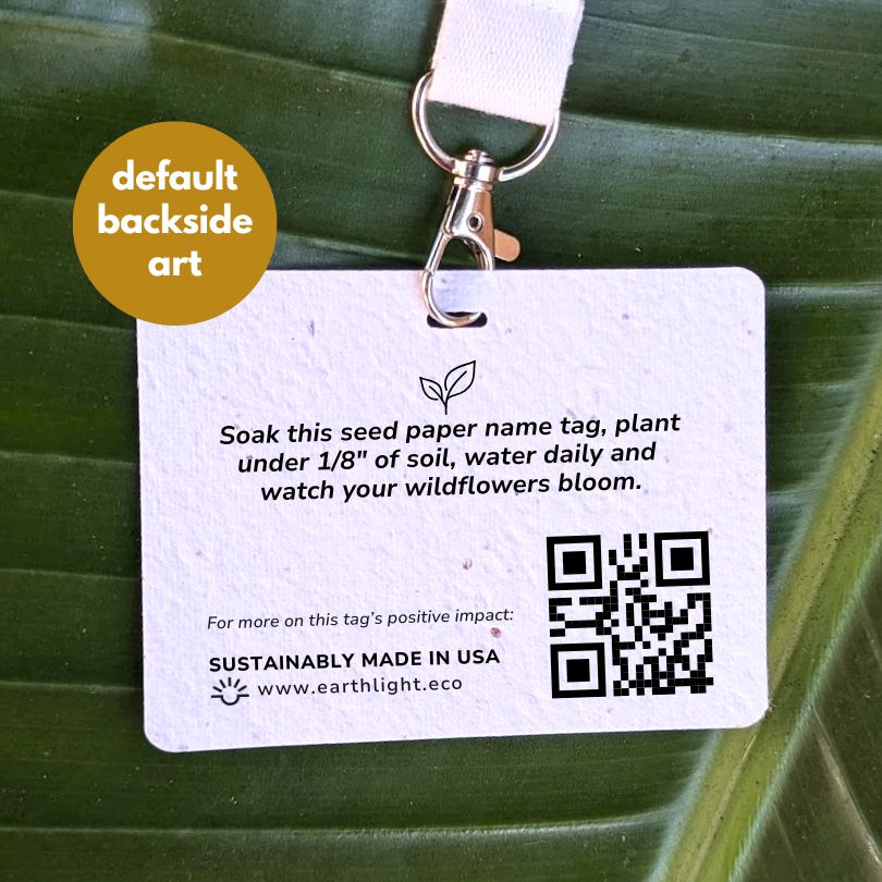 Grow brand loyalty with the plantable, eco-friendly seed paper name tags and badges. Your options are sustainably made in the USA by a B Corp from recycled papers and wildflower seeds, using renewable energy.